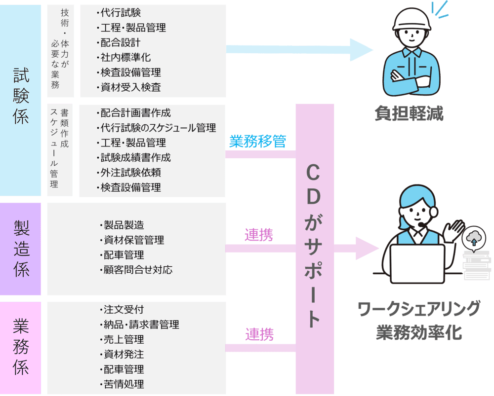 CD導入により、働くひとの「負担軽減」と「業務効率化」を実現いただけます。